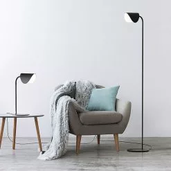 Kauniisti muotoiltu Veska-lattiavalaisin on siro musta valaisin, joka sopii mainiosti erilaisiin sisustuksiin. Mustassa Veska-valaisimessa on tyylikkäästi leikattu kupu, jonka muotoa korostaa valkoiseksi maalatt kuvun sisäosa.