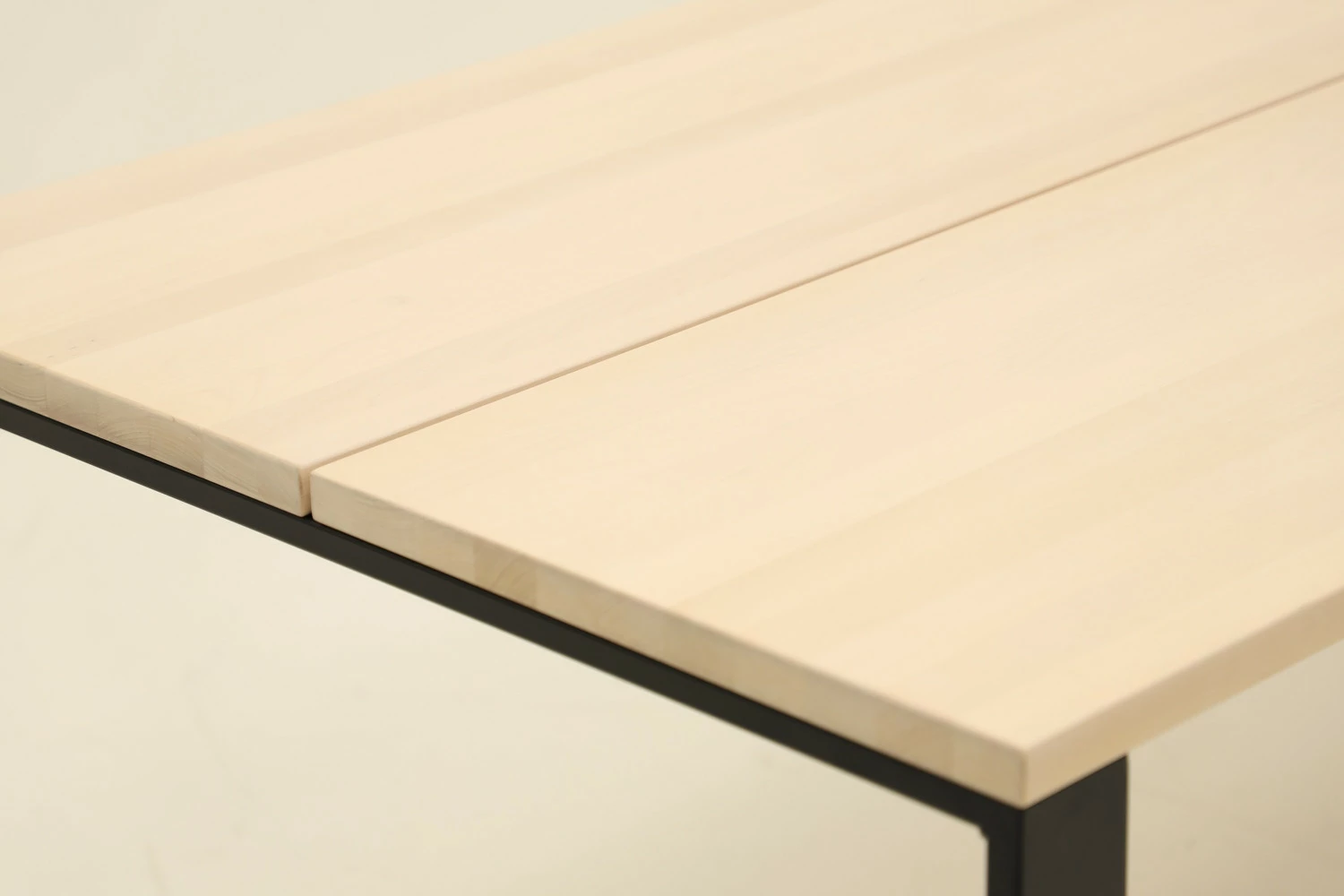 Pohjanmaan Ohio lankkupöytä valkolakatulla koivukannella metallijalalla