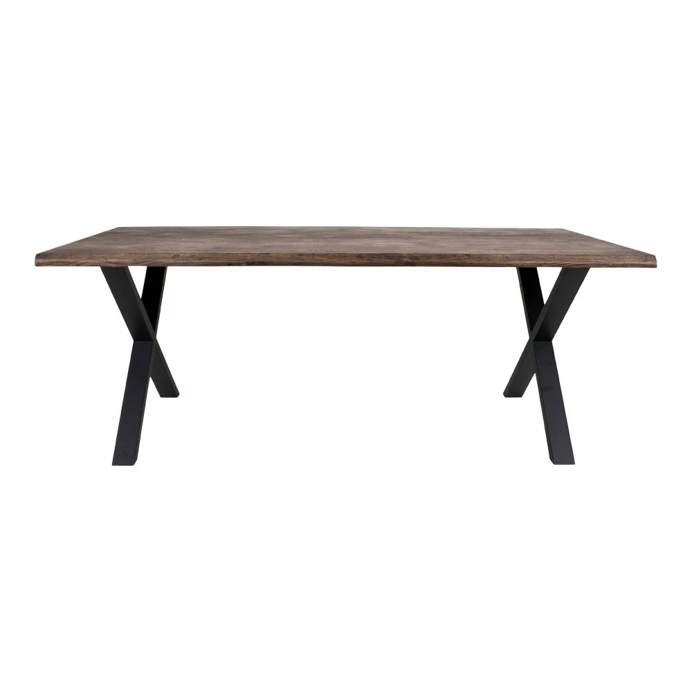 Tyylikäs savunruskea lankkupöytä muotoilluilla pöydän reunoilla