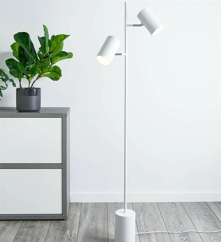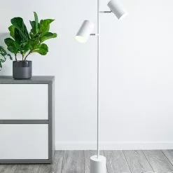 Valkoinen Twin lattiavalaisin käännettävillä varjostimilla