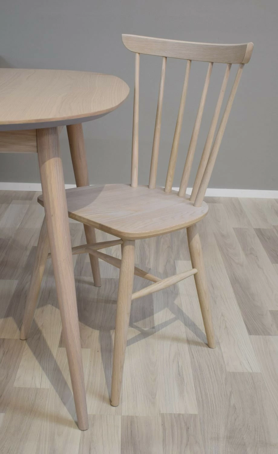 Tammesta valmistettu pinnatuoli on käsitelty kuultavan valkoiseksi mikä jättää upeasti pintoihin näkyville tammipuun luonnolliset syyt ja kuviot.