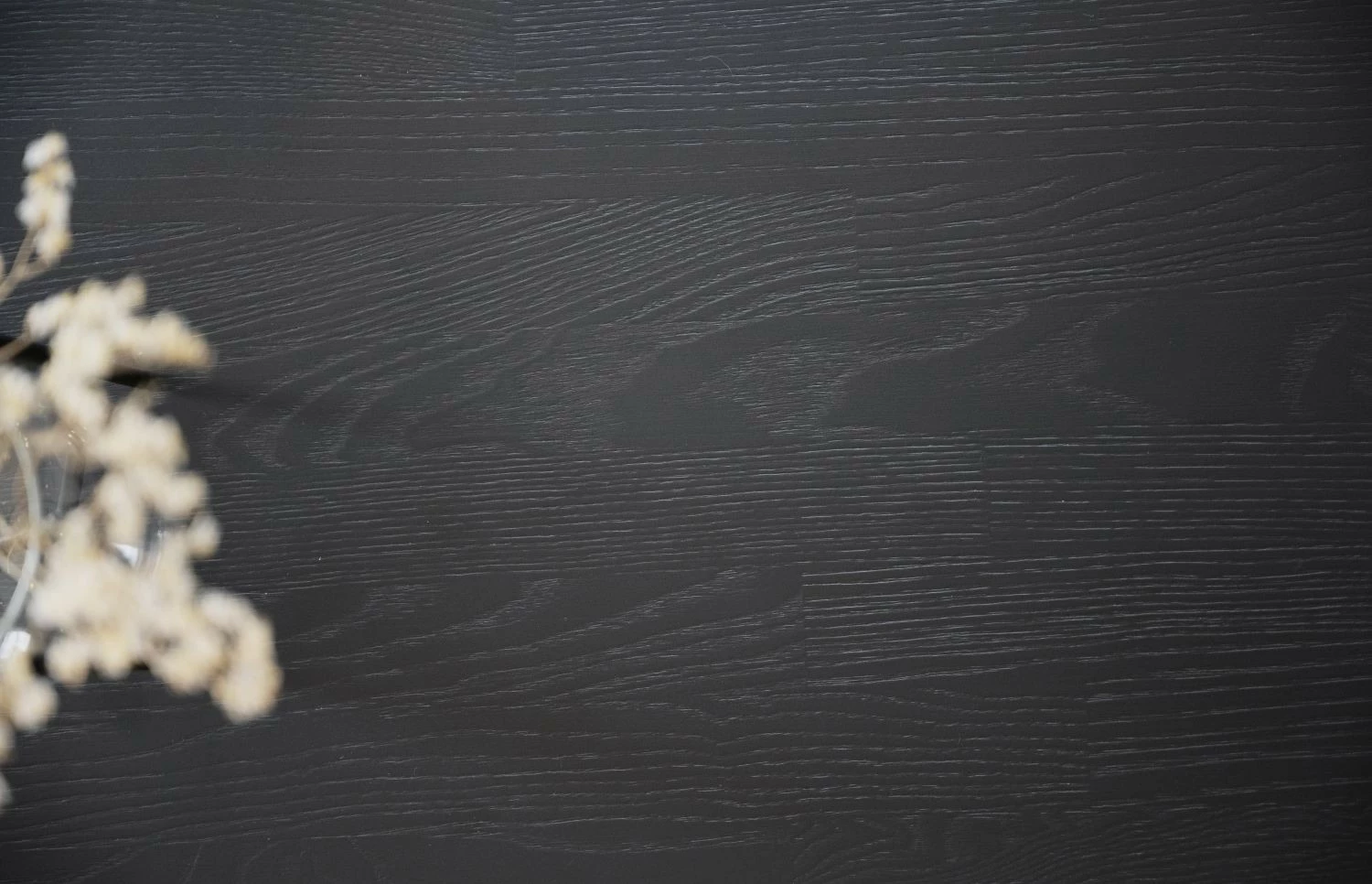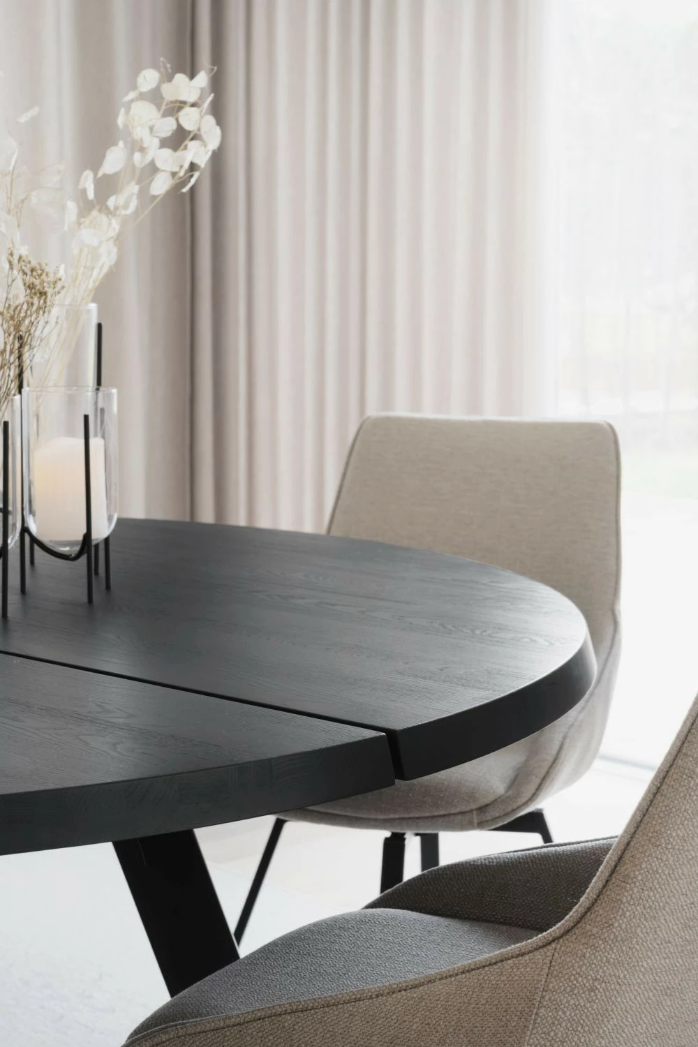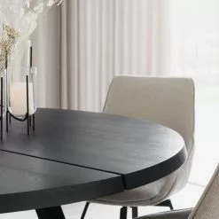 Pöydän kansi on valmistettu saarnista joka on petsattu mustaksi ja lakattu, tämän ansiosista kannen pinnassa näkyy kauniisti puun luonnolliset piirteet. Pöydän tukevat jalat ovat pulverimaalattua metallia.