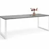 Pöydän kansi on valmistettu kokonaan tammesta joka on petsattu savunruskeaksi ja lakattu. Pöydän tukevat jalat ovat pulverimaalattua metallia.