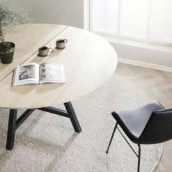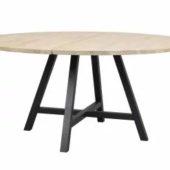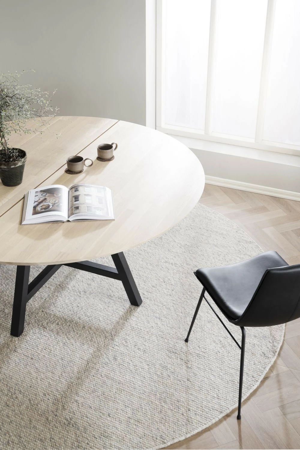 Rowicon Carradale keittiönpöytä on tammesta valmistettu pyöreä ruokapöytä tukevalla mustalla A-mallisella metallijalla. Pöydän kansi on kaunista vaaleaksi käsiteltyä aitoa tammea joka on viimeistelty öljyämällä. Pyöreän pöydän kanssa on helppo yhdistellä eri mallisia ja värisiä tuoleja.