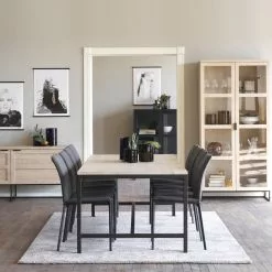 Musta jalkaisen Everett pöydän kanssa sopii hyvin yhteen erilaiset tuolit, kuten pinnatuolit tai metallijalkaiset kangastuolit.