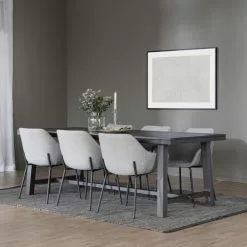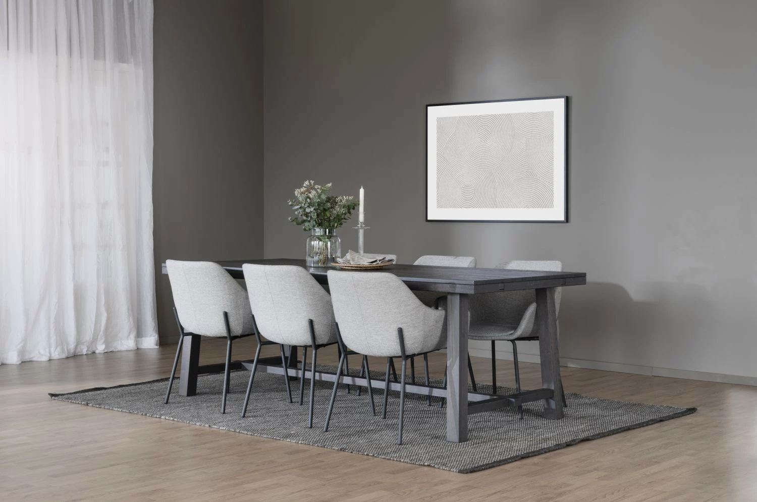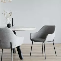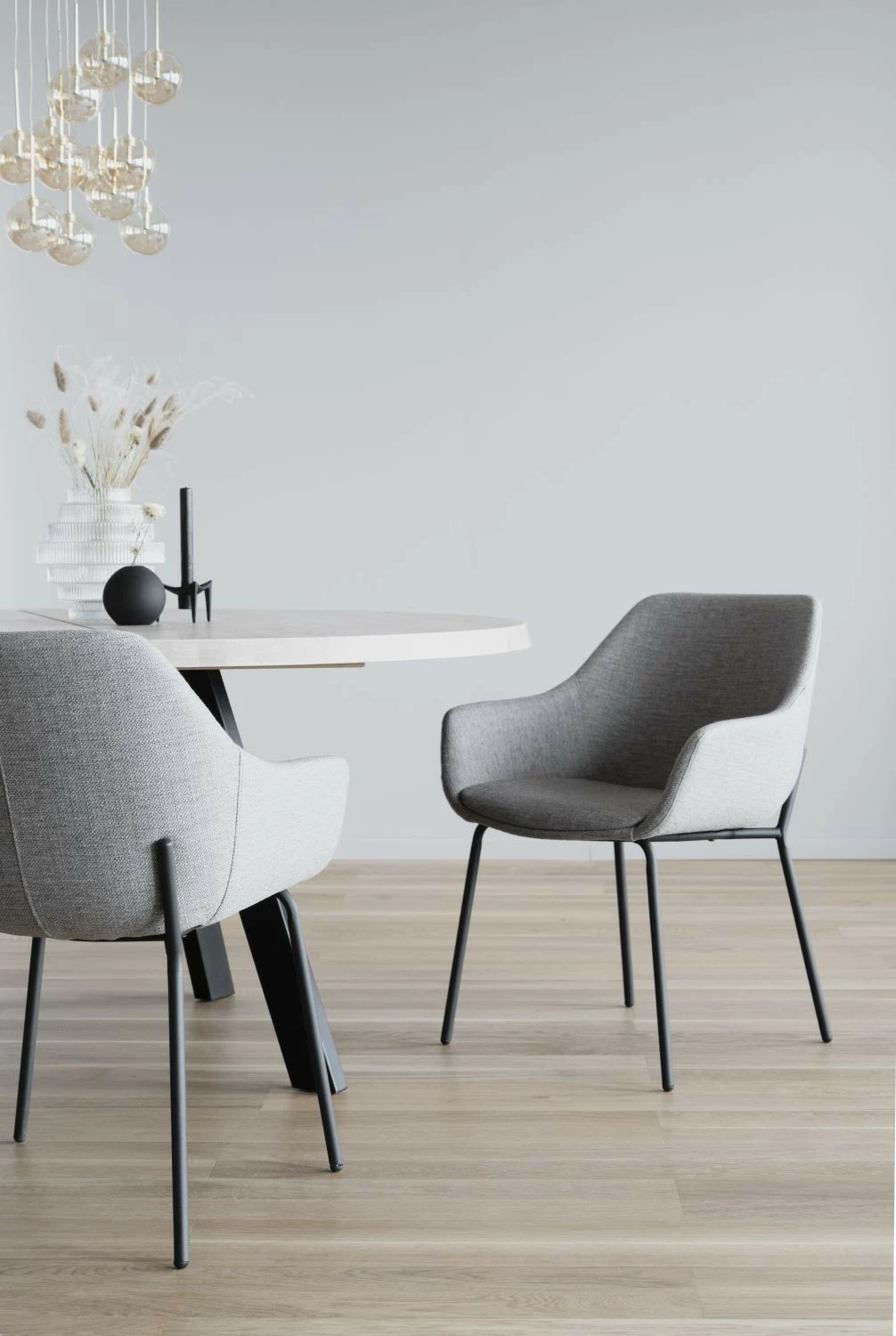 Haley tuoli on verhoiltu kestÀvÀllÀ vaaleanharmaalla kankaalla, joka on myös helppohoitoinen.