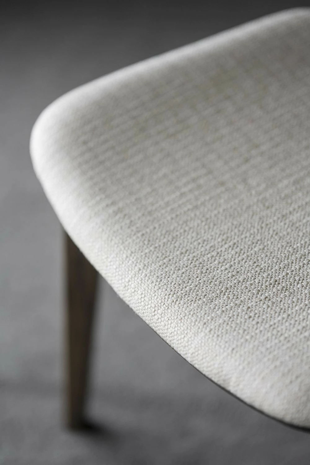Tässä tyylikkään sirossa tuolissa on pehmustettu istuin ja selkänoja, jotka tarkoin harkitun muotoilun kanssa tarjoaa erittäin miellyttävän istuttavuuden, verhoilukankaana on helppohoitoinen beige huonekalukangas jonka voit halutessasi suojata tekstiilien suoja-aineella.