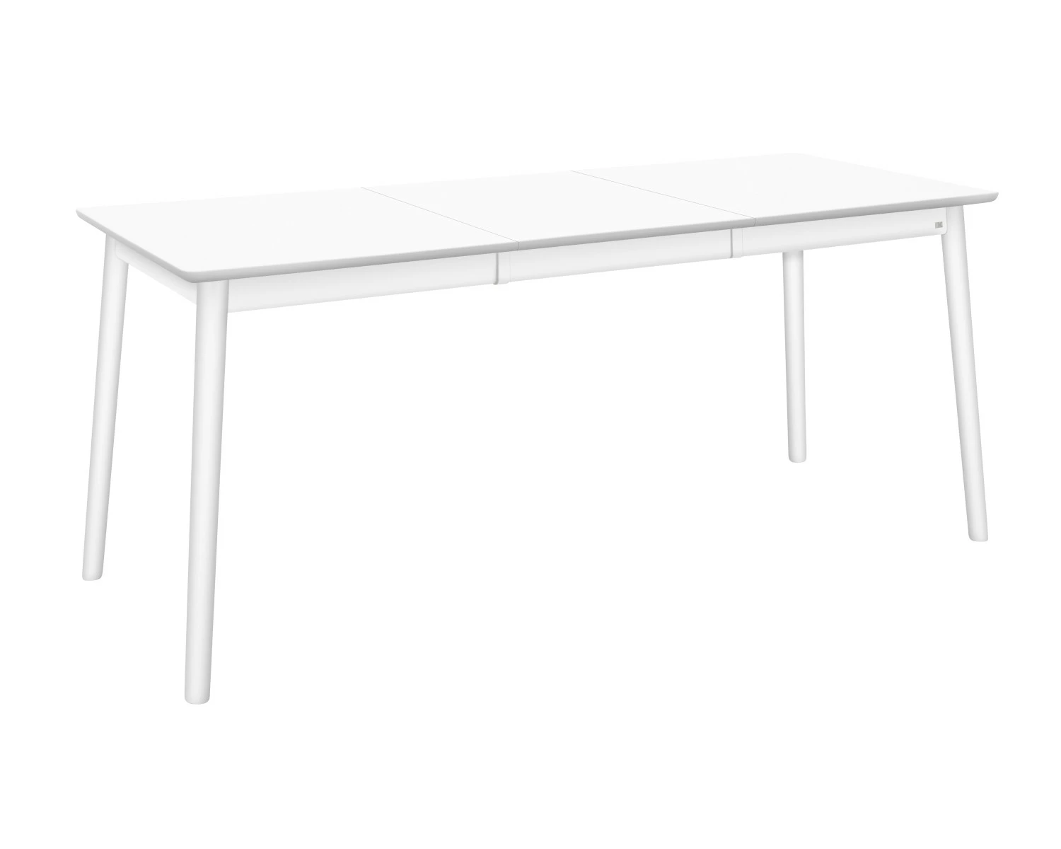 Jatkettava Zig Zag pöytä on sulavalinjainen ruokapöytä yhdellä jatkopalalla. Ruokapöydän koko on ilma jatkopalaa 127×75 cm. ja mukana toimitettavalla jatkopalalla pöydän kooksi tulee 180×75 cm. Pöydän jalat ja sokkeli on valmistettu koivusta, kansilevy on valkoiseksi maalattu mdf-levyä.